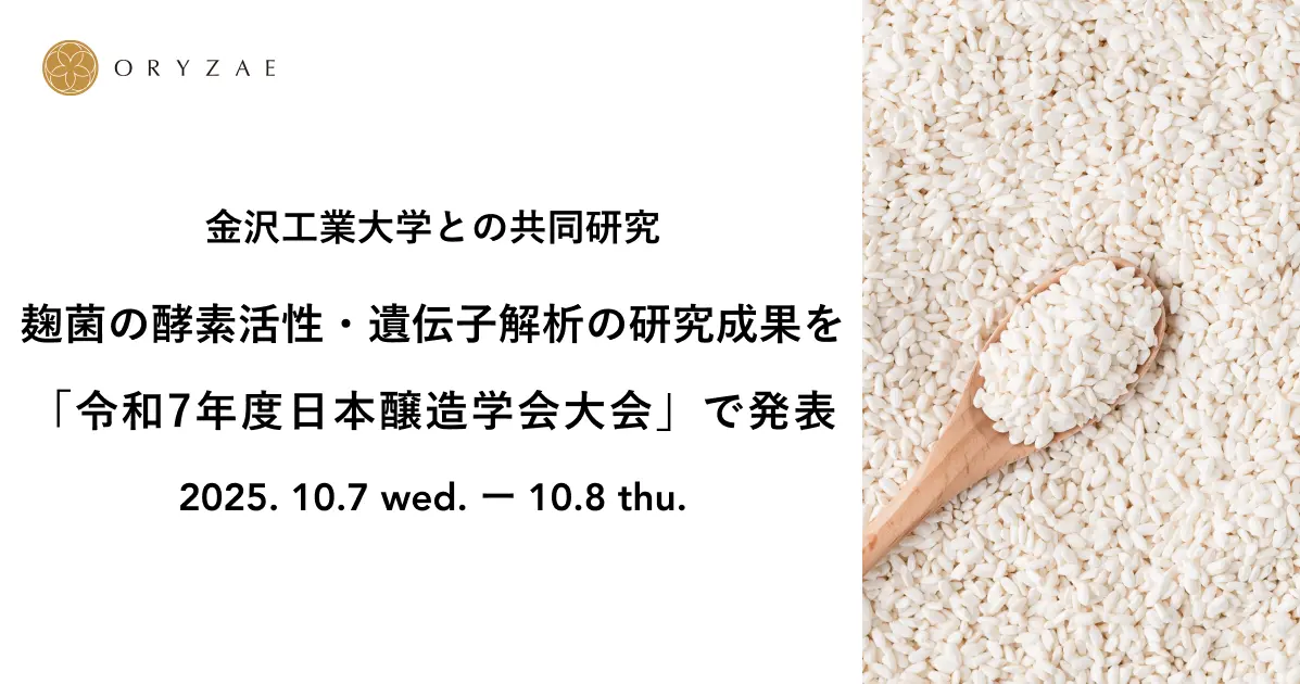 日本の伝統発酵技術を用いて社会課題解決を目指す株式会社オリゼ(本社:東京都渋谷区、代表取締役:小泉泰英)は、金沢工業大学(町田雅之教授、佐野元昭教授)との共同研究成果を、2025年10月に開催された「令和7年度 日本醸造学会大会」にて発表いたしました。本研究では、麹菌(Aspergillus oryzae)実用株におけるアミラーゼ(酵素)活性および遺伝子構造の解析を行い、米麹を用いた甘酒や甘味料の生産性を高めるための新たな知見を得ました。
