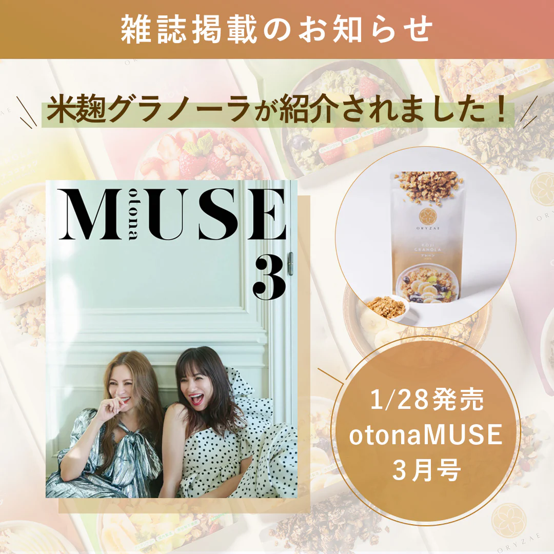1月28日発売の雑誌「otona MUSE(オトナミューズ)」でORYZAEの米麹グラノーラが紹介されました。