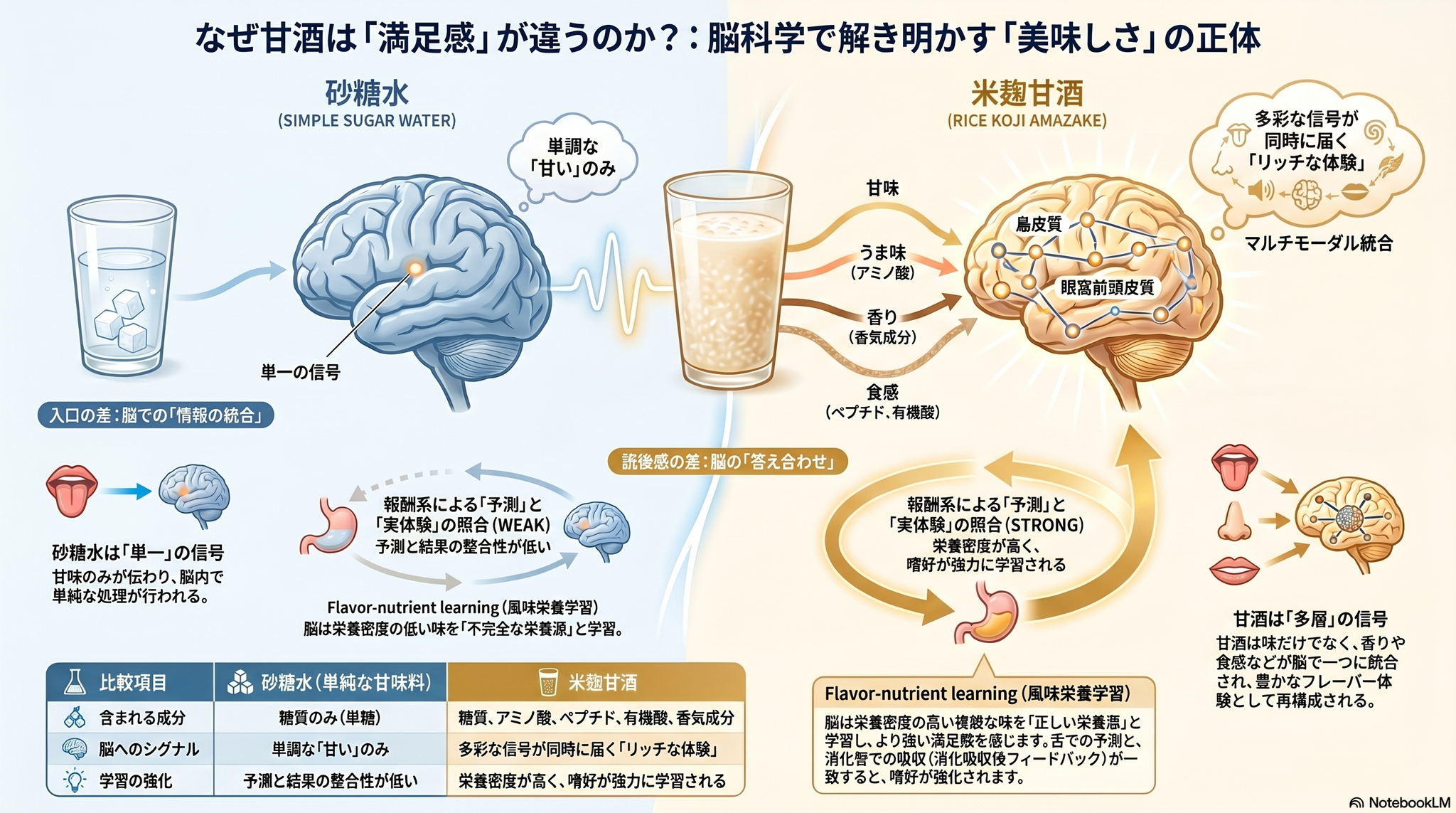 米麹で作った甘酒を飲むと、砂糖水とはまったく違う「満足感」を覚える。同じ甘さなのに、なぜこれほど印象が変わるのか。