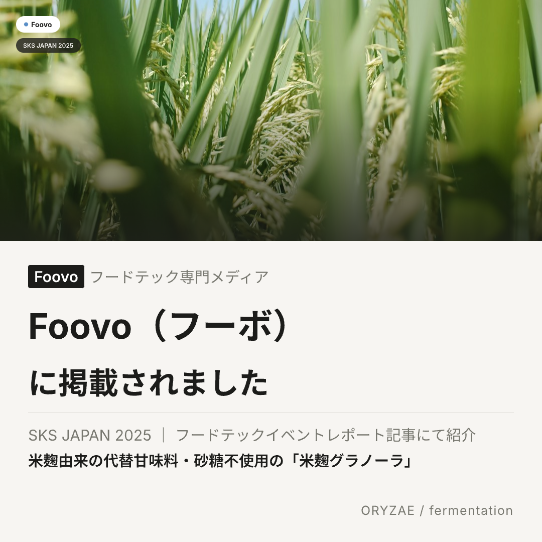 フードテック専門メディア「FoodTech Japan」が発行した、2025年10月に東京で開催されたフードテック・イベント「SKS JAPAN2025」のレポート記事にて、弊社オリゼが紹介されました。