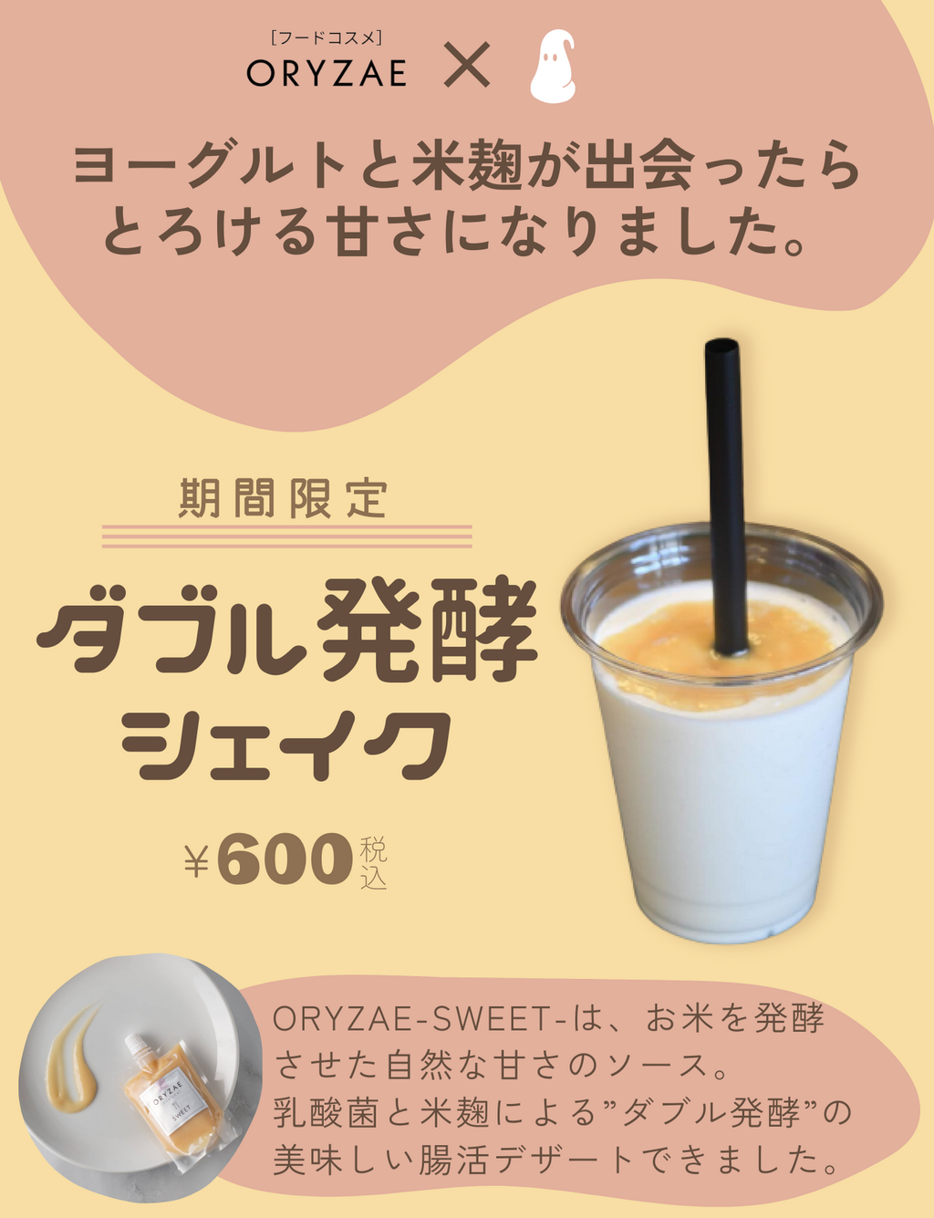 フローズンヨーグルトシェイクにオリゼ甘味料(米麹発酵糖分)をご利用いただいています。ヨーグルトのミルク感とORYZAEのうまみによって、キャラメルのような濃厚な味わいが生まれました。